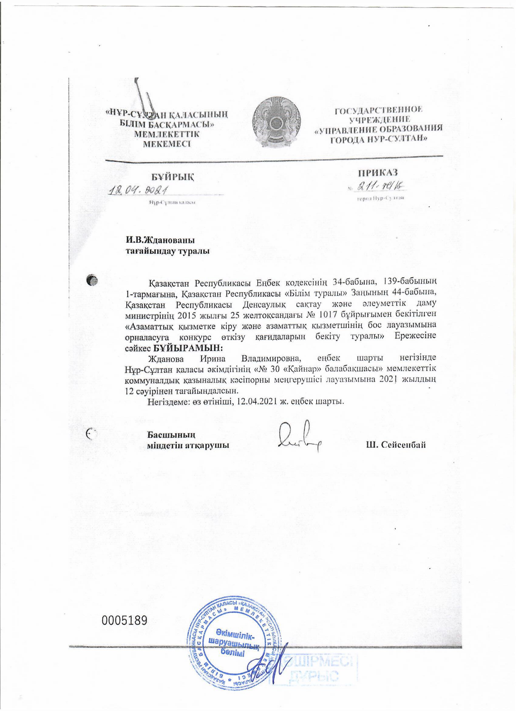 акимата города Нур-Султан