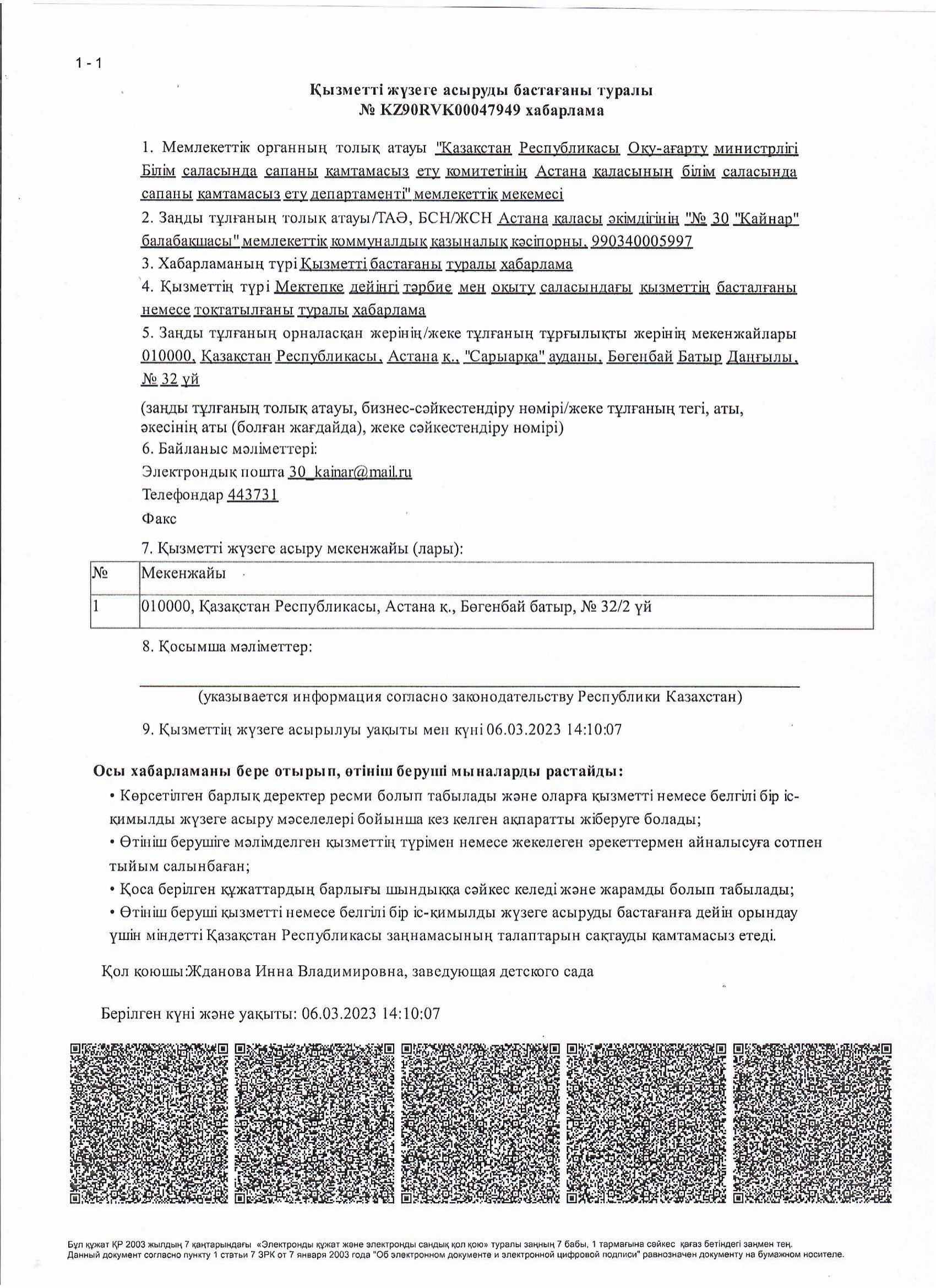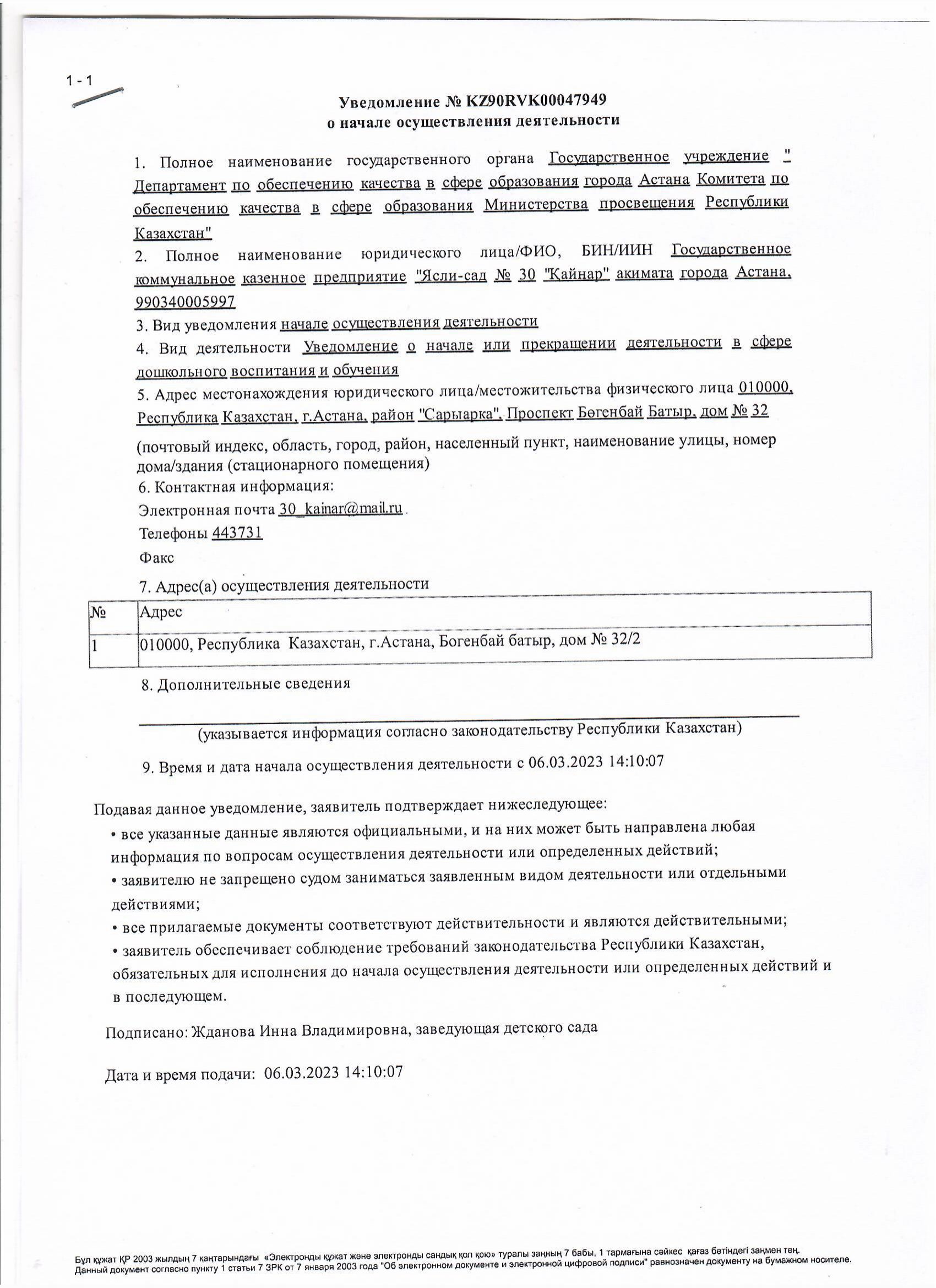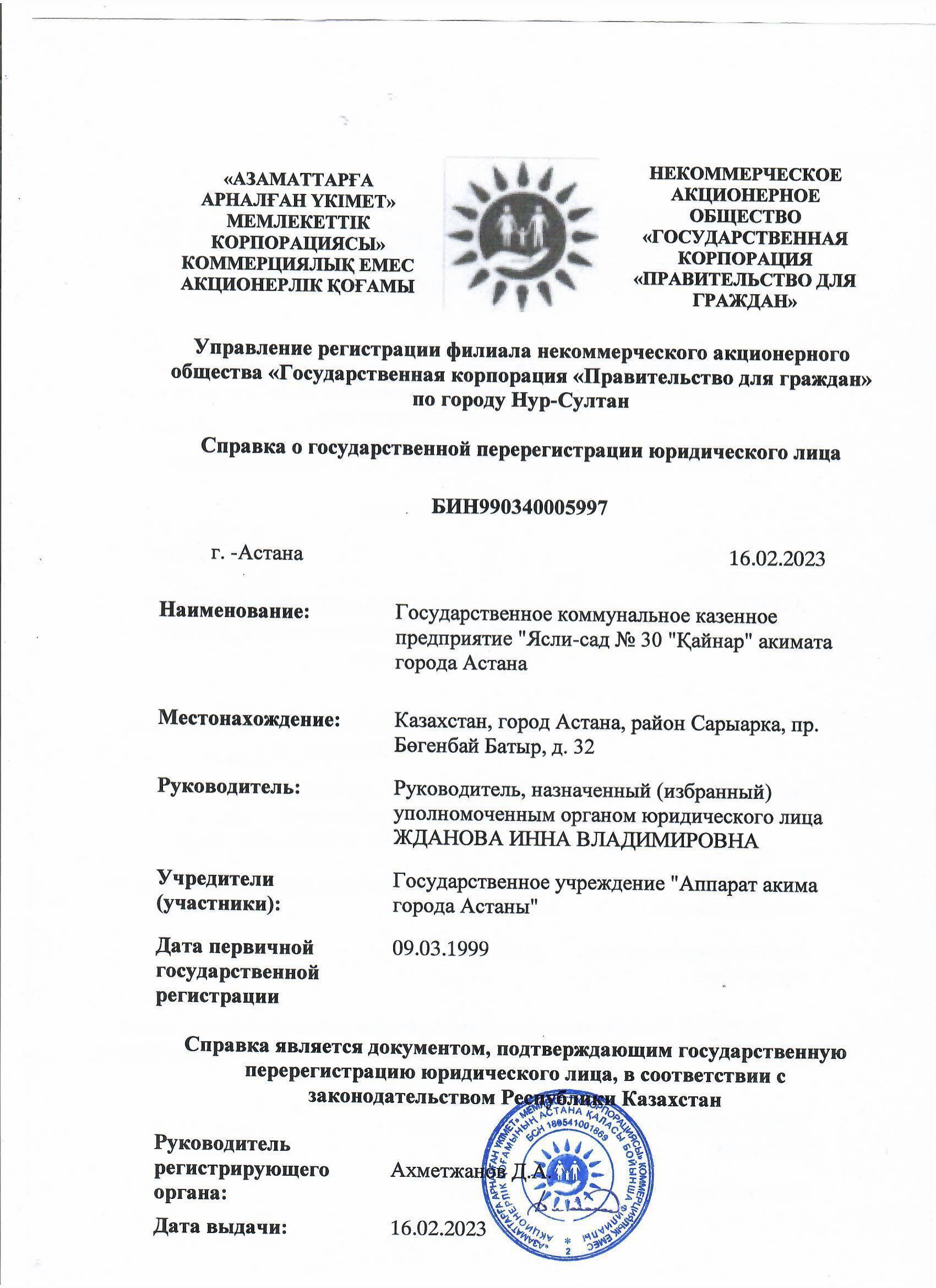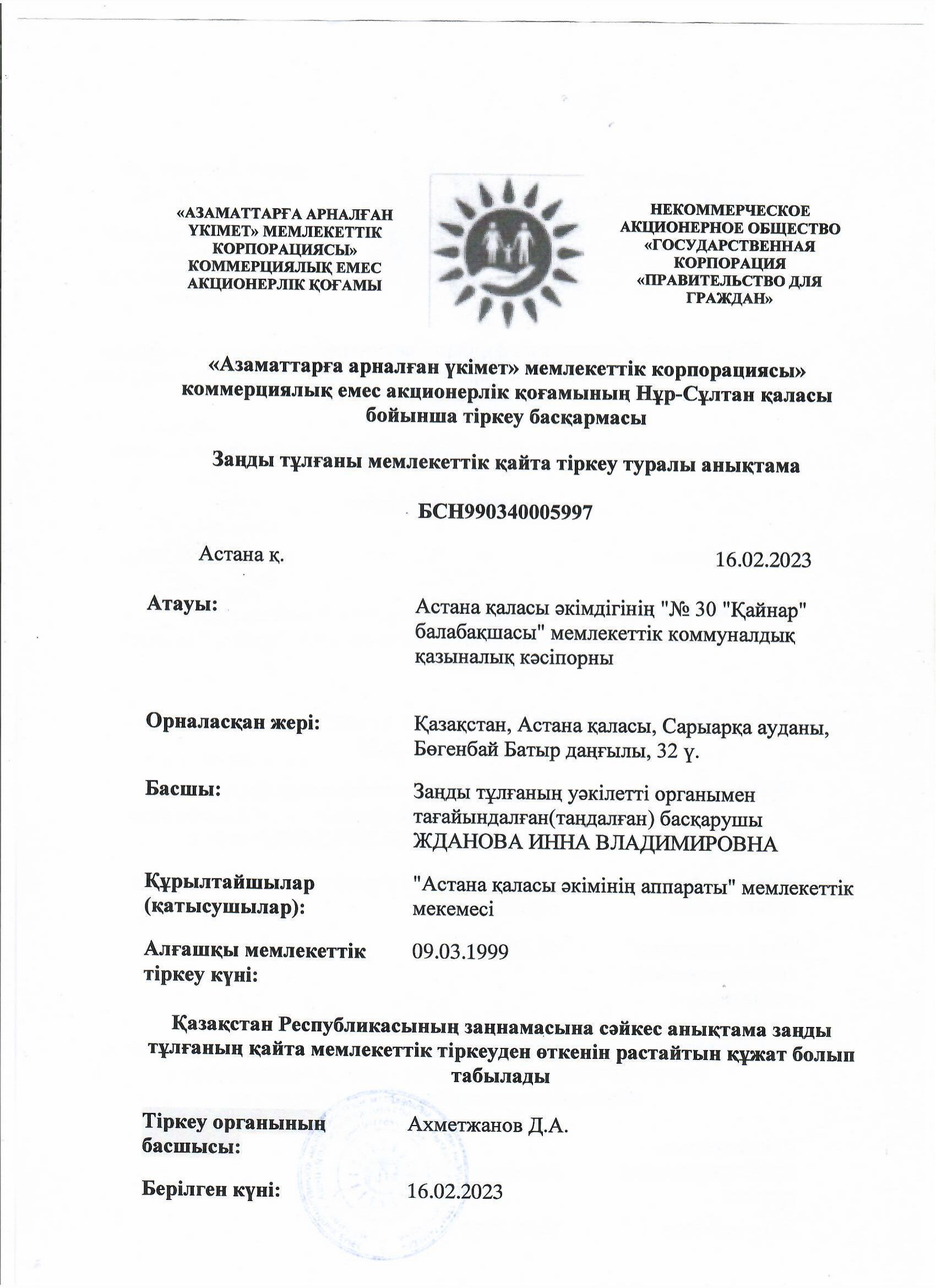 ГККП "Ясли-сад № 30 "Қайнар"